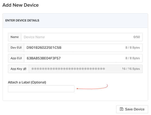 To attach a label after creating a new device, go to the specific device details page and click the Add Label button. You can choose an existing label from the dropdown list or create a label.