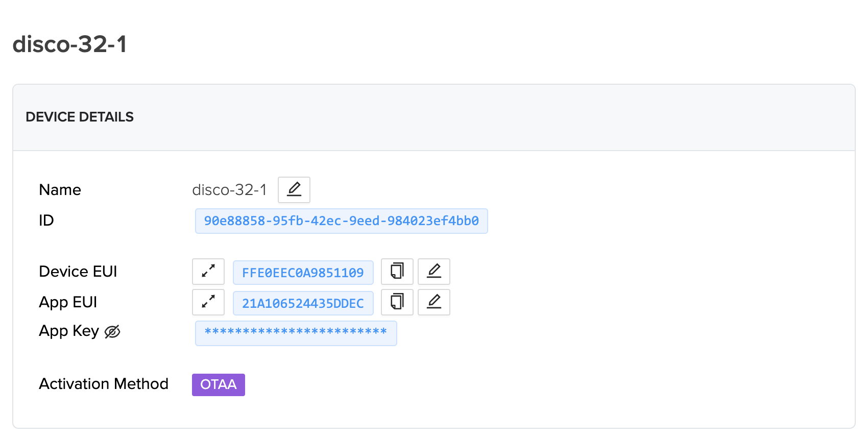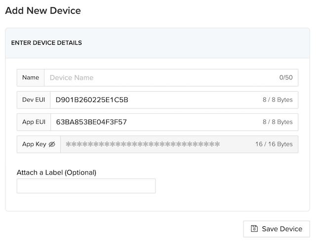 will be given a unique identifier generated by Console). DevEUI, AppEUI, and AppKey are auto