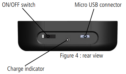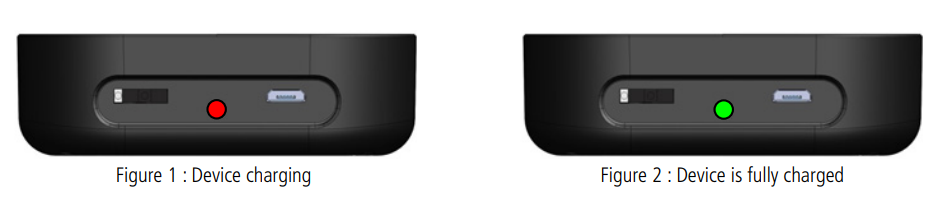 The device is rechargeable via a micro USB connector located on the bottom. It will charge automatically in the ON or OFF state. The device can be used while charging. Any charger supplying 5V and at least 500mA is sufficient.