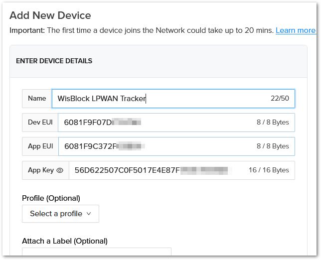 - Enter the App EUI