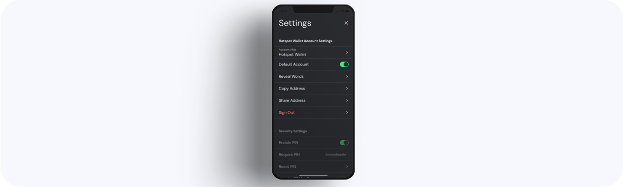 | Default Account | When using multiple accounts, this toggle will determine which one is the default and will show first whenever the Helium Wallet app is opened. |